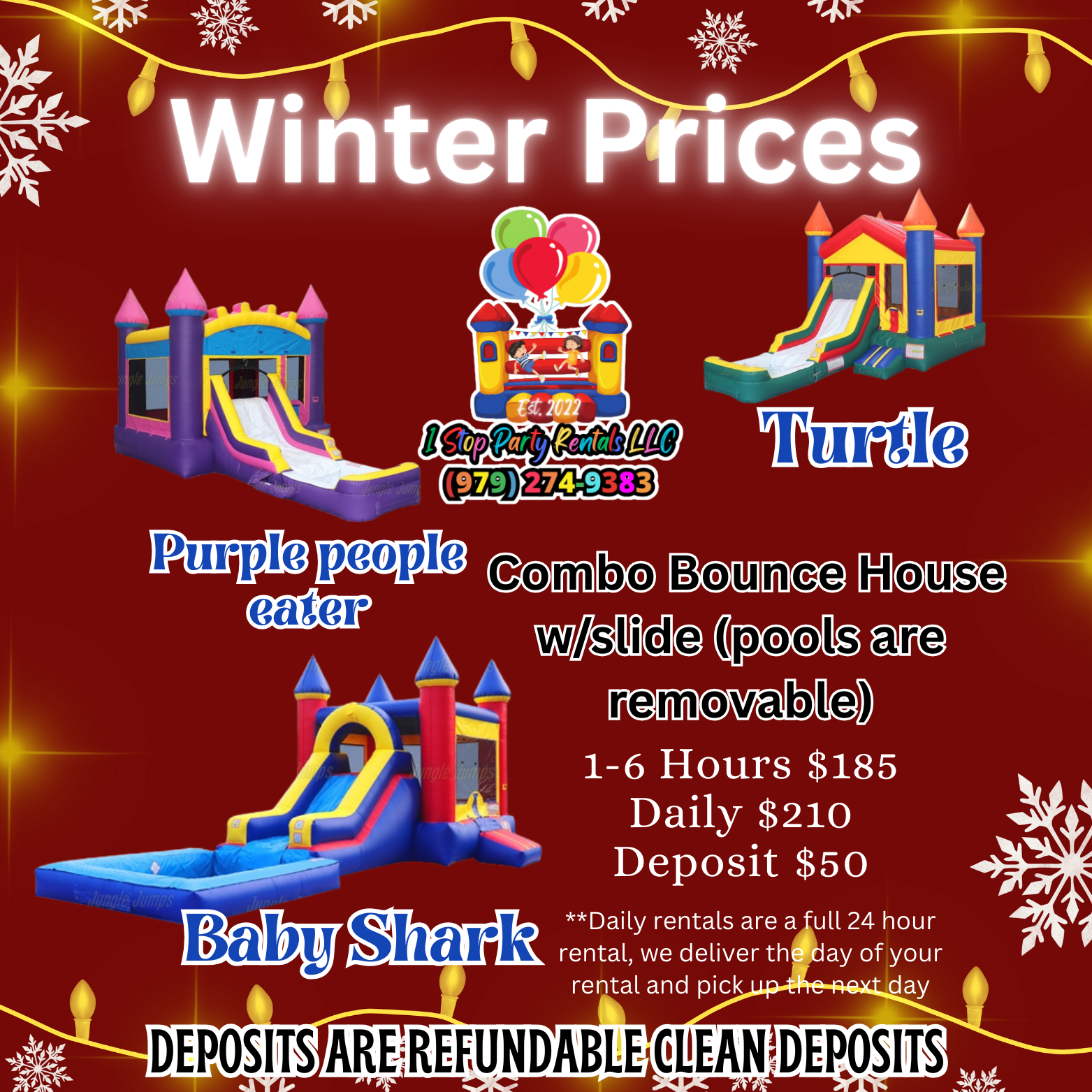 Combo Bounce House Slide comes with detachable pool for colder weather.